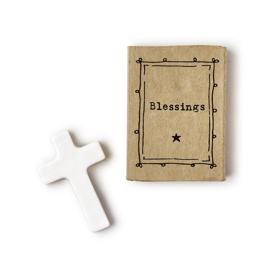Bring a touch of love and faith into your home with the Blessings Mini Cross. Made from delicate porcelain, this miniature cross comes nestled in a matchbox with the word "Blessings" on the front. A perfect gift for any occasion, spread joy and blessings to your friends and loved ones with this unique piece.