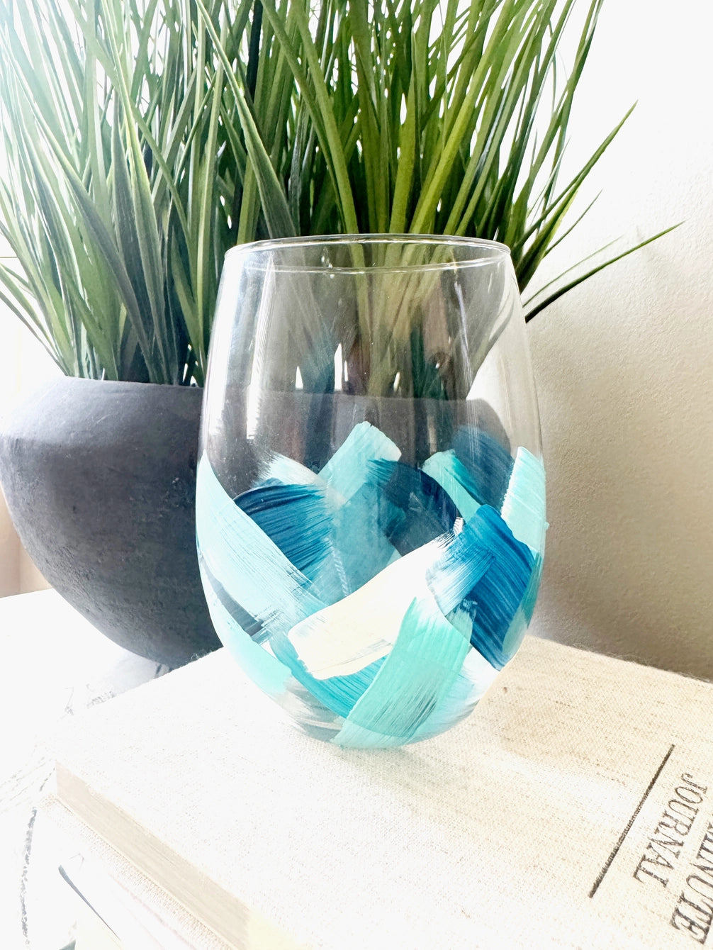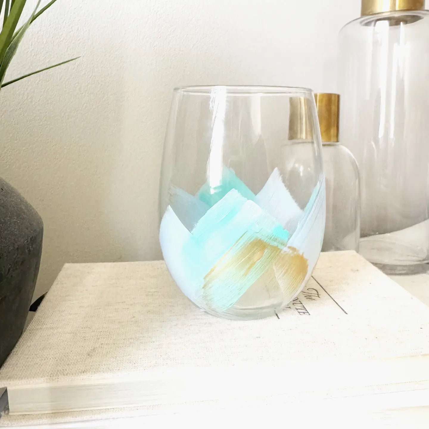 Brushstroke Handpainted Stemless Wine Set/2