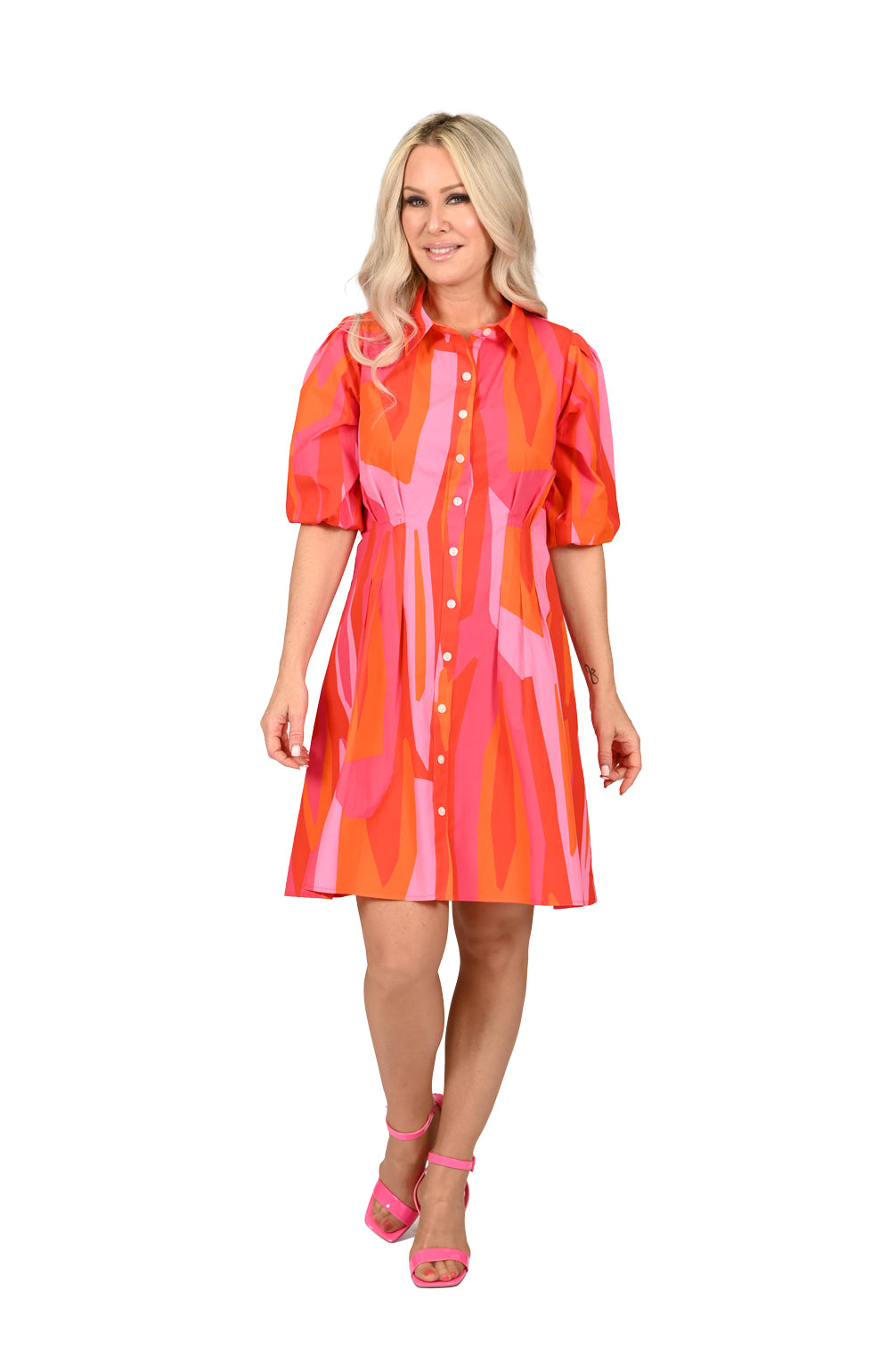 Get ready to turn heads in our Carla Pink & Orange Shirt Dress! With its flattering tucks at the waist and cute puff sleeves, this dress is sure to make a statement. The pink and orange combination is perfect for adding a pop of color to any look. Plus, it's so cute, you'll want to wear it all the time. (Seriously, we won't judge if you do!)