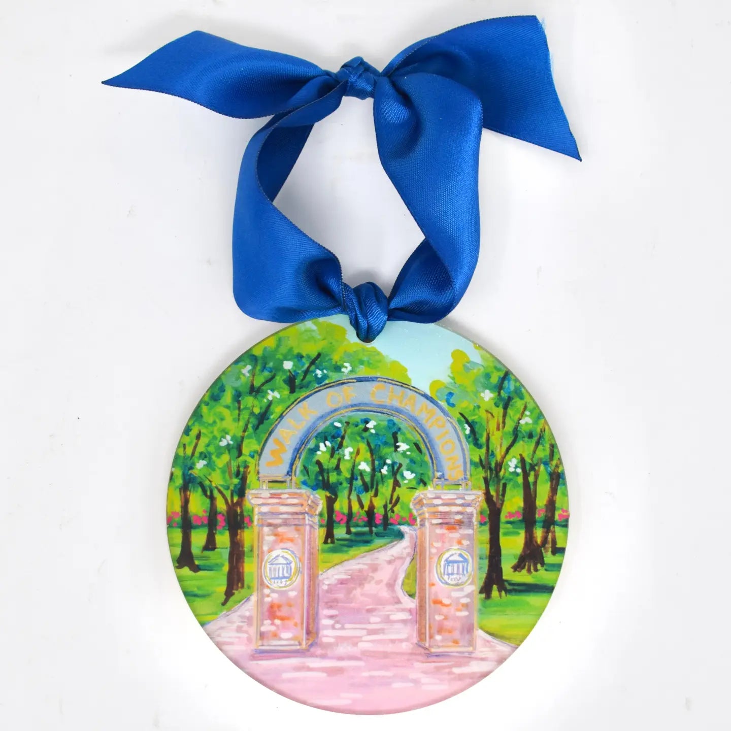Celebrate your favorite city with our Collegiate Landmark Acrylic Ornament! Expertly printed from a hand-painting by artist Elizabeth Warner, this 4.5" ornament is a beautiful addition to any tree. The satin ribbon makes it easy to hang, and the hand-written gold name on the back adds a personal touch.