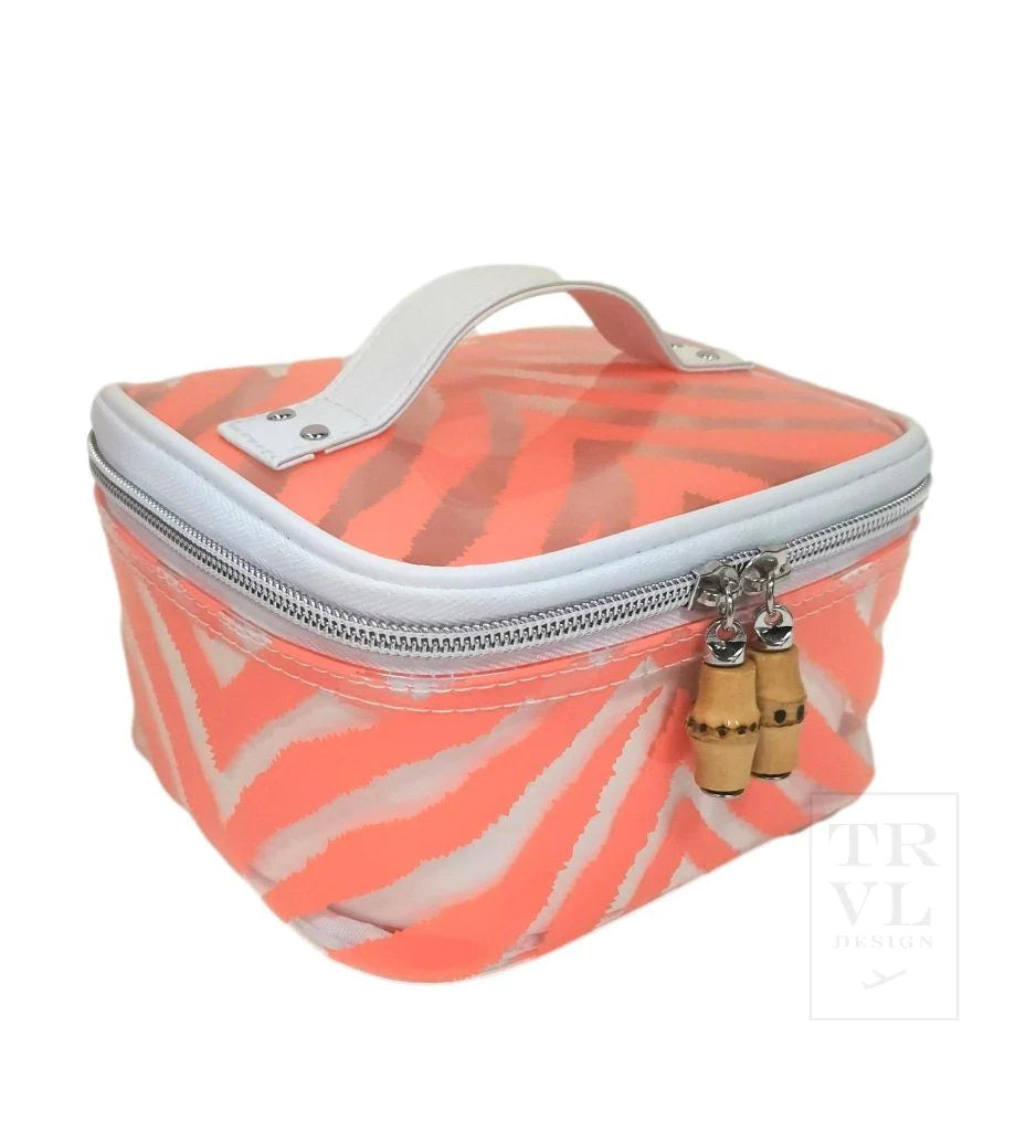 Our clear top handle full size train Head Case now comes with its "mini" Face Case - making for a dynamic DUO set! Unzip the double zip closure of the main cosmetic case to reveal a bonus smaller case so you can keep all your daily essentials organized at home or away. Spacious enough to hold all your favorite skincare products, lightweight enough to never weigh you down, easy to wipe clean and waterproof. You’ll never again have trouble digging up your favorite serum or demonstrating to a TSA agent what is in your bag.