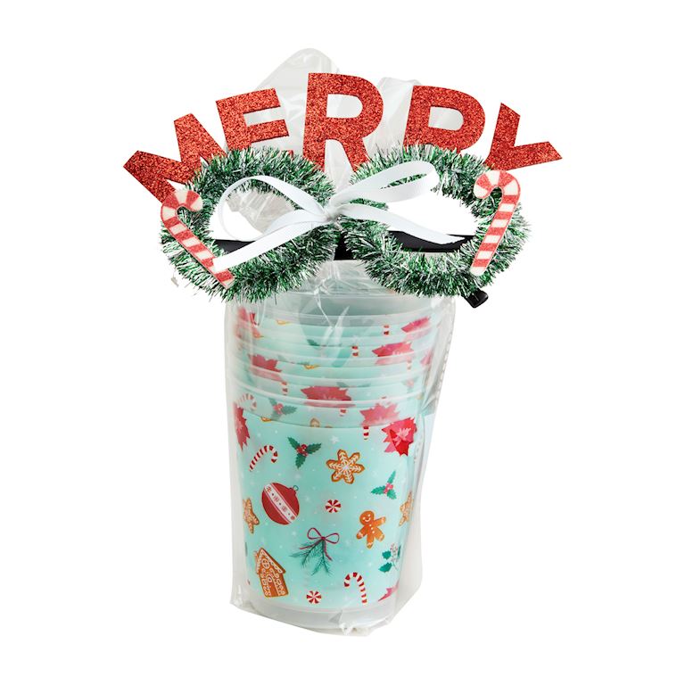 Get the party started with this Holiday Party Cups Gift Set! It features 6 vibrant patterned cups made from durable plastic, perfect for all your festive fun. Plus, sparkling tinsel-trimmed glasses add just the right touch of glam to your celebrations. Lightweight, reusable, and ready to bring joy to any gathering!