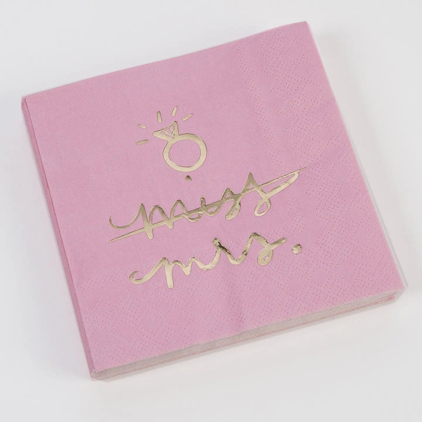 Add a touch of elegance to your wedding or bachelorette party with Miss to Mrs. Cocktail Napkins! The pink background and gold foil print make for a stylish look while you celebrate your transition from Miss to Mrs. Perfect for special occasions, these napkins are a must-have party accessory.