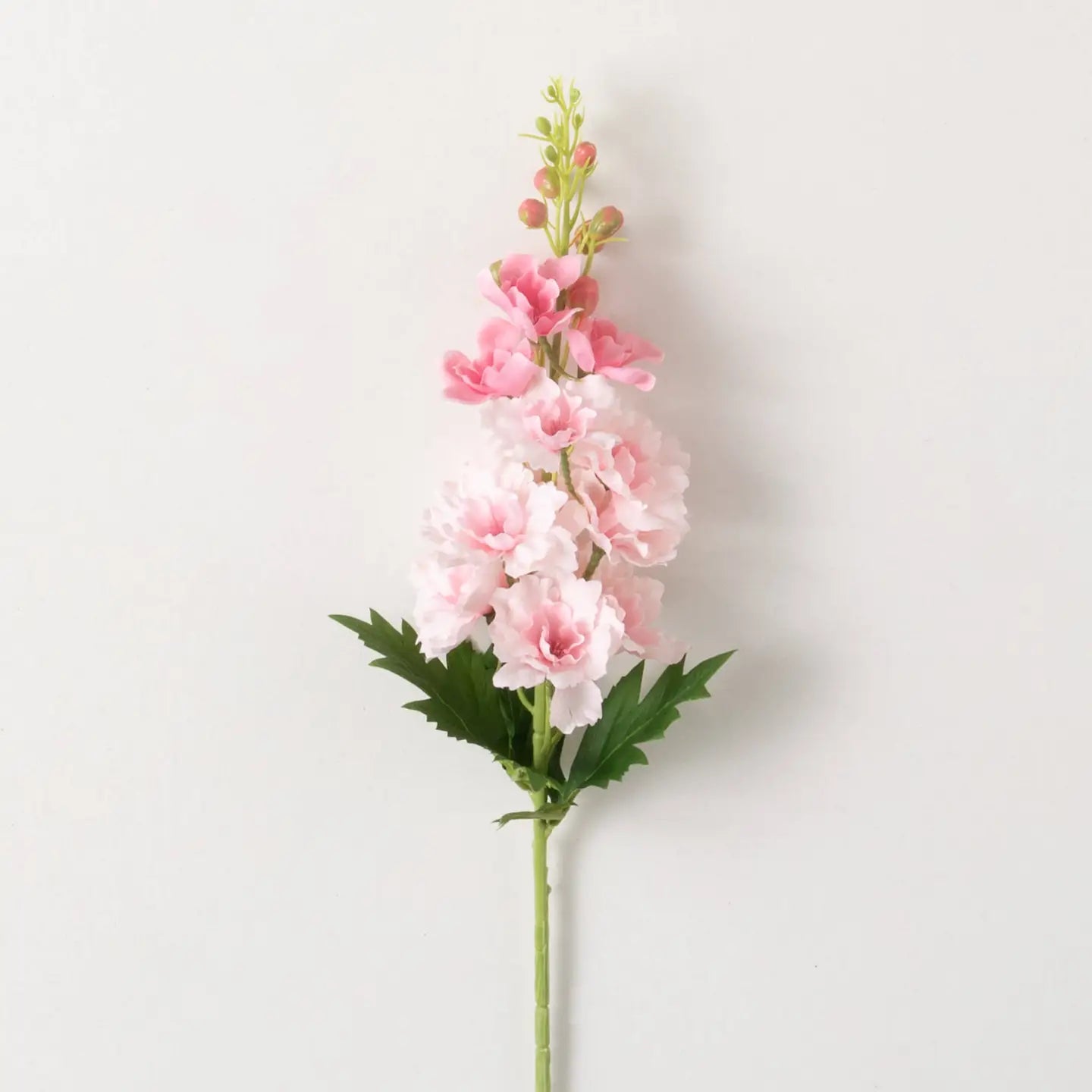 Add a touch of realistic spring to your home with So Real Light Pink Delphinium Stem. With lifelike petals and no watering required, it's a low-maintenance and long-lasting way to brighten up any room. Perfect for centerpieces or adding a pop of color to your decor.