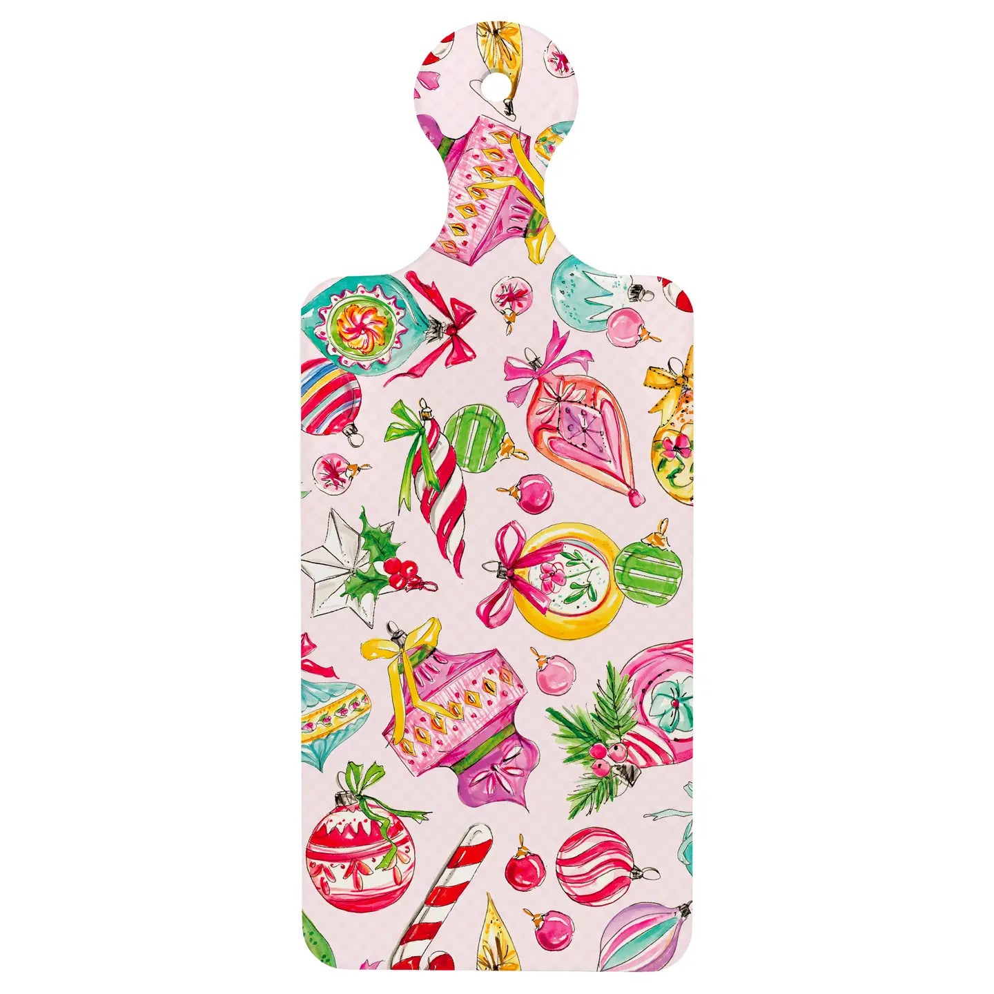 Deck the halls with this charming vintage ornaments cuterie board—the perfect blend of nostalgia and entertaining! Measuring 11.5" L x 4.75" W x 0.25" H, this delightful serving piece showcases festive ornament designs that instantly elevate your holiday spread. Whether you're arranging charcuterie, cheese, or festive treats, its compact size makes it ideal for intimate gatherings or cozy celebrations. A whimsical hostess gift that brings vintage holiday magic to any table.